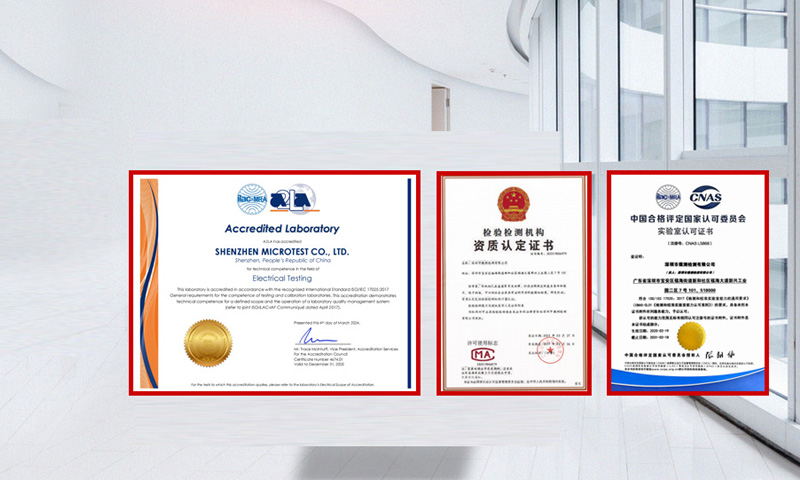 Microtest微测检测已建立起20余个专业实验室,128人的工程师团队,10000㎡检测科技园,已获得CNAS、CMA、A2LA、CBTL、WPC、Bluetooth SlG等授权和认可,可为企业提供全球上百个国家的测试服务。
