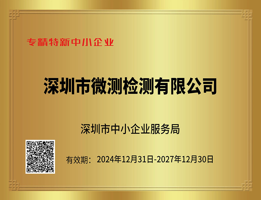“专精特新”中小企业是指具有专业化、精细化、特色化、新颖化等四大特征的中小企业。企业通常专注于某一特定细分市场,拥有独特的技术或工艺,产品或服务具有较高的附加值和显著的经济、社会效益。微测检测凭借其在检测领域的专业专注、精益求精、独特的技术优势以及持续的创新能力,荣获“专精特新中小企业”称号。